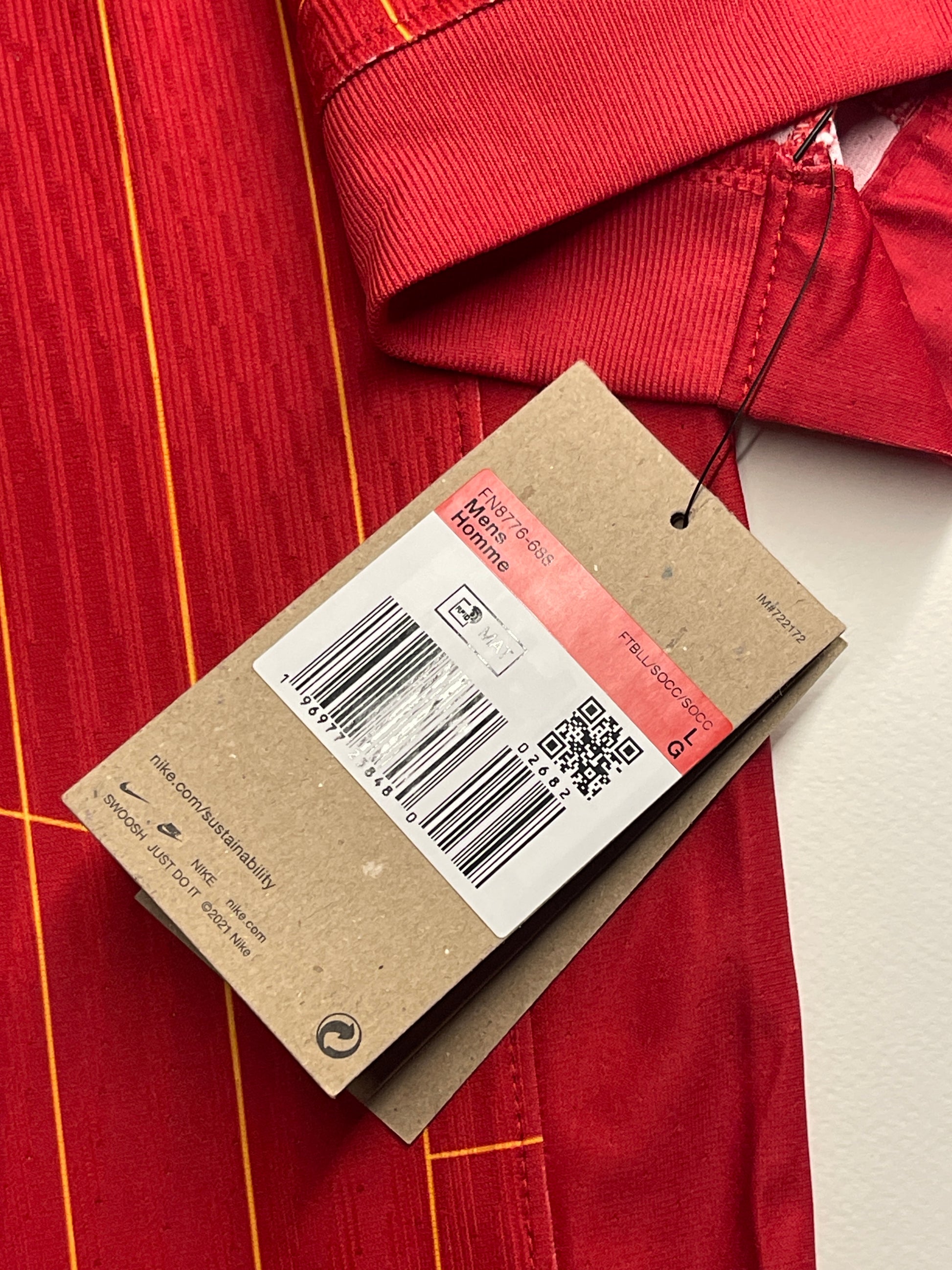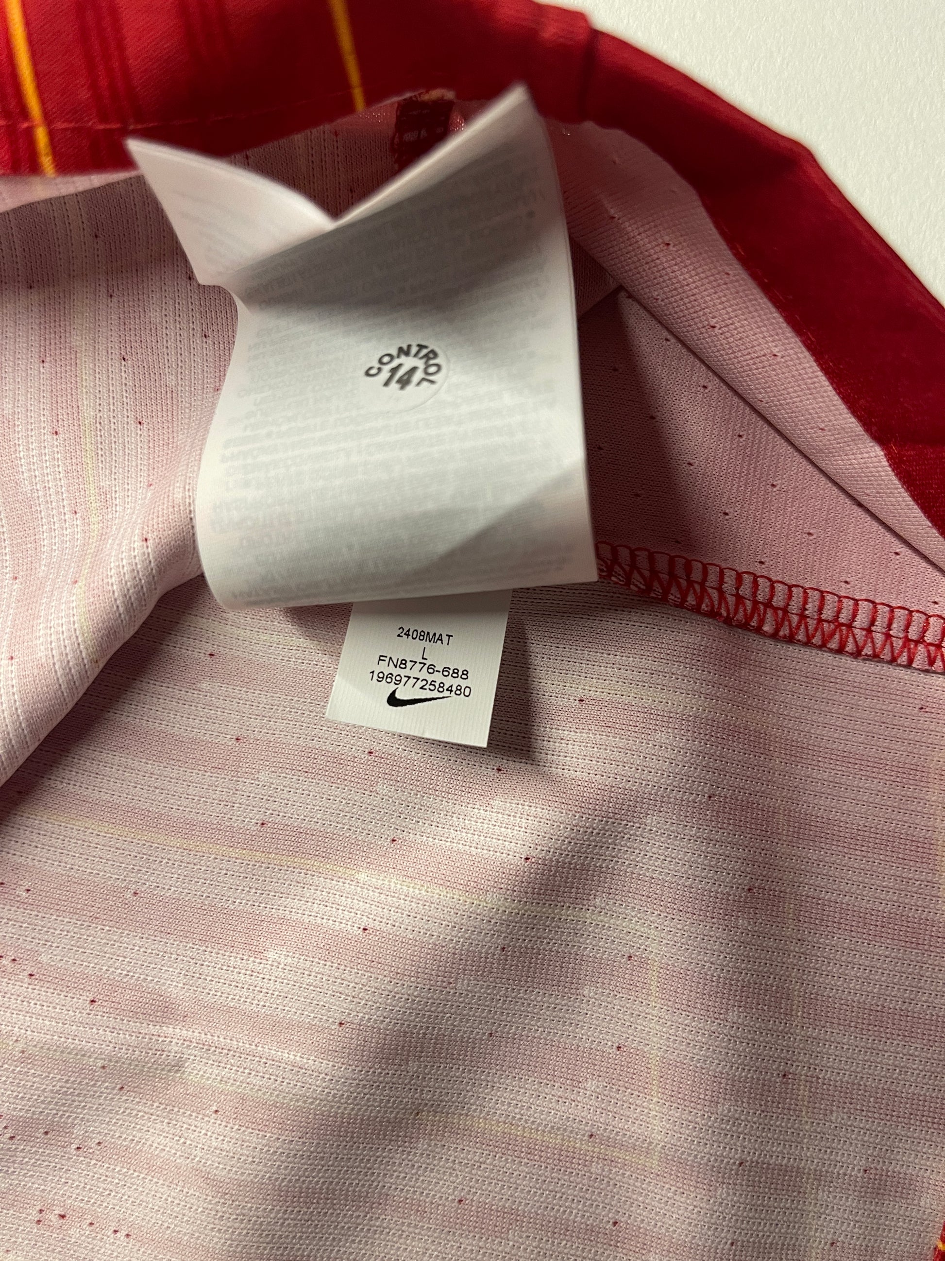 The 2024–25 Liverpool home Player Version shirt in classic red with subtle geometric pinstripes and yellow trim, worn by Mohamed Salah #11. Featuring Salah’s 29 goals & 18 assists, Liverpool secured the Premier League title — their record-equalling 20th. Salah also earned the Premier League Player of the Season award. A historic keeper’s dream in red.